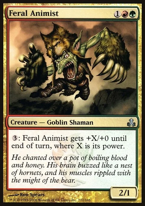 {3}: Feral Animist gets +X/+0 until end of turn, where X is its power.