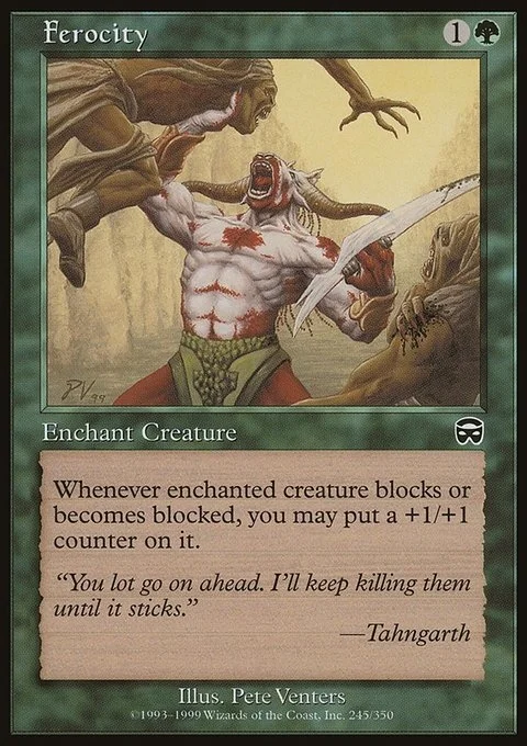 Enchant creature Whenever enchanted creature blocks or becomes blocked, you may put a +1/+1 counter on it.