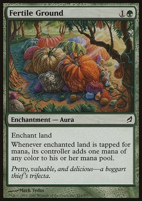 Enchant land Whenever enchanted land is tapped for mana, its controller adds an additional one mana of any color.