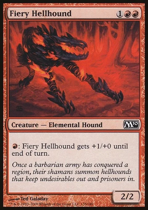 {R}: Fiery Hellhound gets +1/+0 until end of turn.