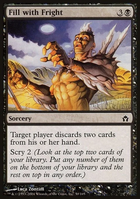 Target player discards two cards. Scry 2. (Look at the top two cards of your library, then put any number of them on the bottom and the rest on top in any order.)