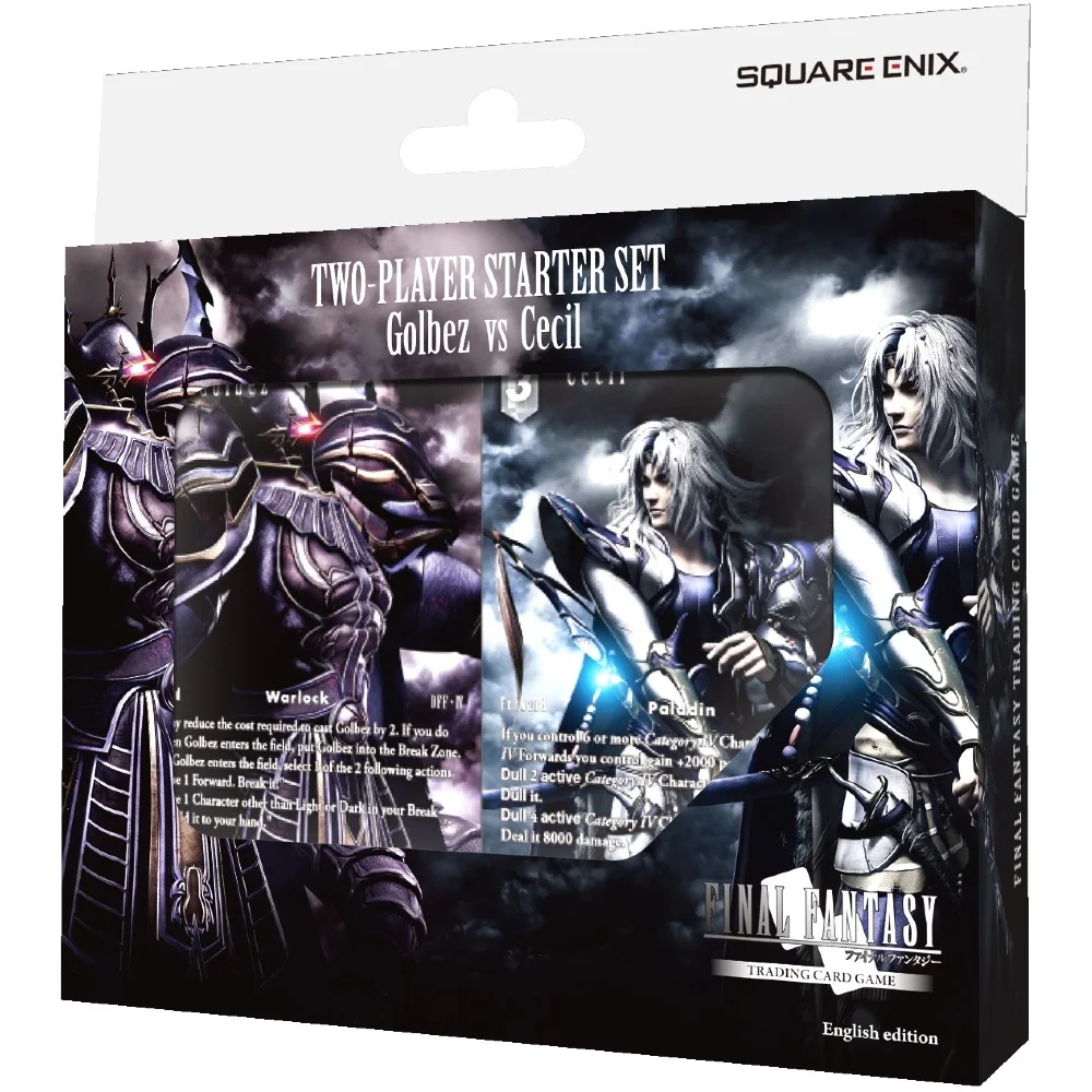 This is the latest addition in the TWO-PLAYER STARTER SET line-up, featuring the beloved FINAL FANTASY IV. Included in the set are two preconstructed decks: the first is a Fire/Earth deck focusing on Golbez and the minions he manipulates to enact his nefarious plot; and a Lightning/Water deck featuring the paladin Cecil and the allies that stand alongside him in their fight against the forces of evil. So, two players can play right out of the box, each choosing iconic characters from the beloved video game.