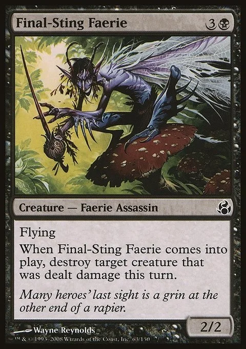 Flying When Final-Sting Faerie enters, destroy target creature that was dealt damage this turn.