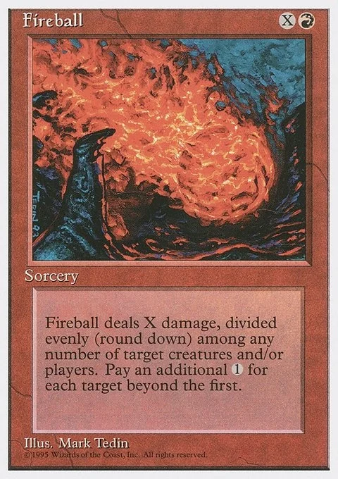 This spell costs {1} more to cast for each target beyond the first. Fireball deals X damage divided evenly, rounded down, among any number of targets.