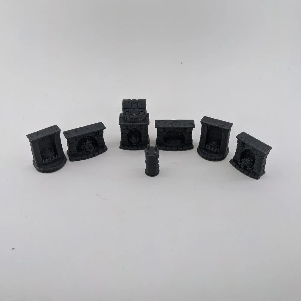 Included are fireplaces with fire, logs and onis empty. There is also a fireplace stove.