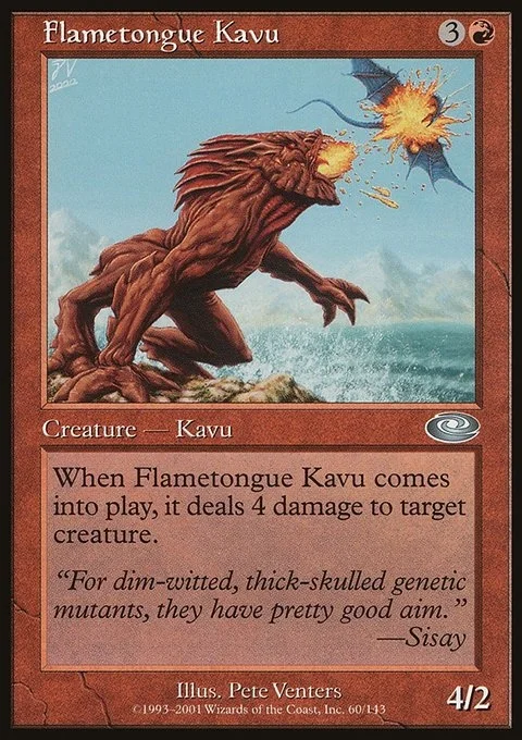 When Flametongue Kavu enters the battlefield, it deals 4 damage to target creature.