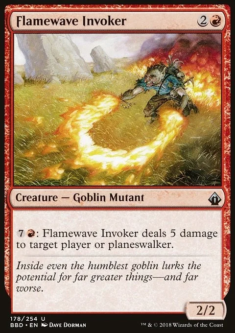 {7}{R}: Flamewave Invoker deals 5 damage to target player or planeswalker.