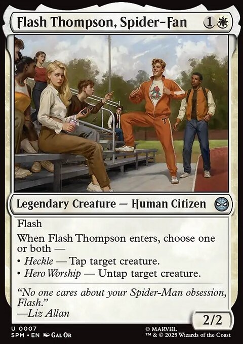 Flash When Flash Thompson enters, choose one or both — • Heckle — Tap target creature. • Hero Worship — Untap target creature.