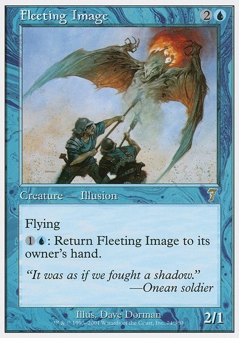 Flying (This creature can't be blocked except by creatures with flying or reach.) {1}{U}: Return Fleeting Image to its owner's hand.