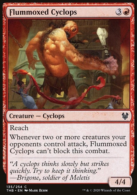 Reach Whenever two or more creatures your opponents control attack, this creature can't block this combat.