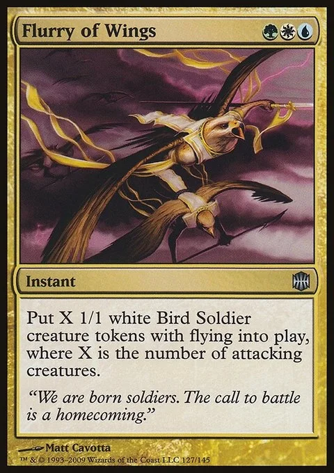 Create X 1/1 white Bird Soldier creature tokens with flying, where X is the number of attacking creatures.