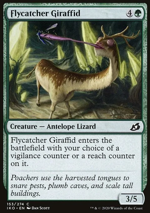 This creature enters with your choice of a vigilance counter or a reach counter on it.
