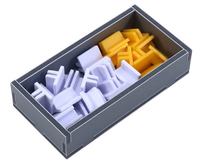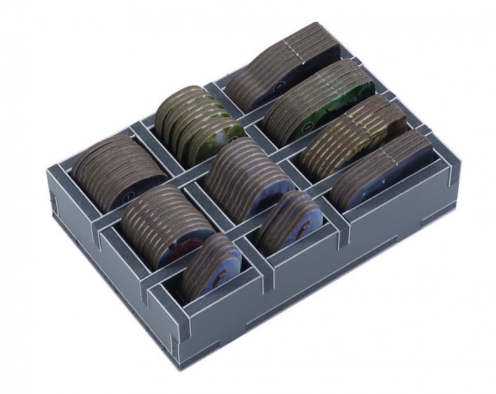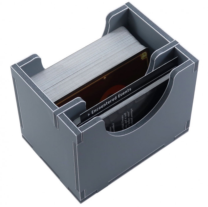 Insert compatible with Gloomhaven: Jaws of the Lion®. The design provides both efficient storage and improved game play. Many of the trays can be utilised during the game, and they greatly aid set-up and clear-away times. The insert is arranged in three layers.
