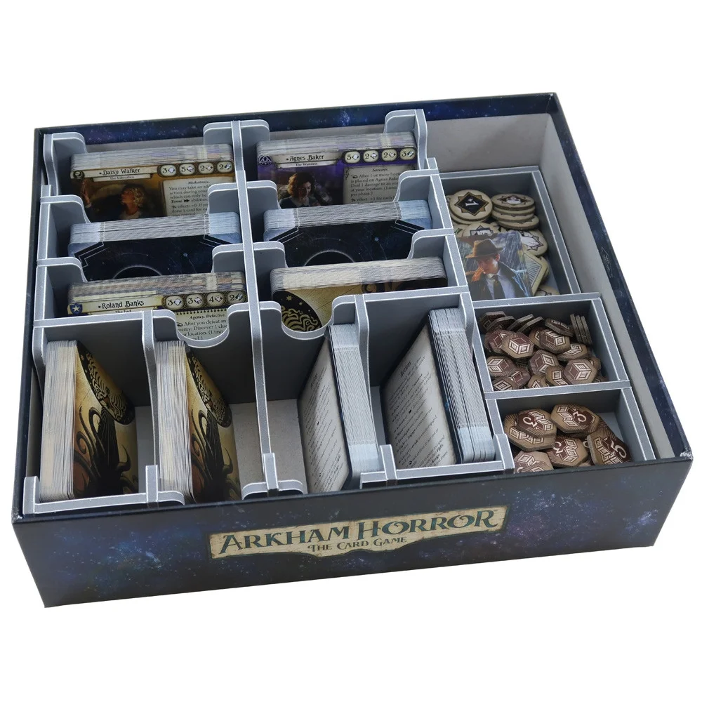 Insert compatible with the new rectangular boxes for Living Card Games® such as Arkham Horror: The Card Game® The Revised Core Set, The Lord of the Rings: The Card Game® The Revised Core Set, as well as their expansions with the same box size.