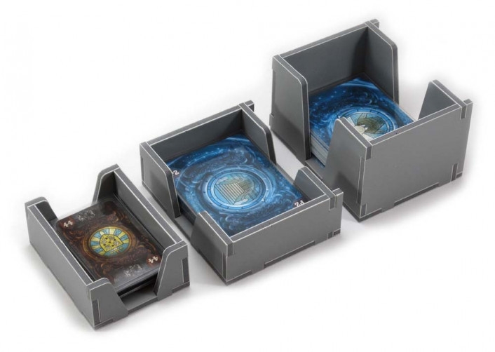 This insert is designed to be compatible with Mysterium®, and the Hidden Signs® and Secrets & Lies® expansions. There is space also for any promo cards you might have. The design provides both efficient storage and improved game play. Many of the trays can be utilised during the game, and they greatly aid set-up and clear-away times. The rules and boards act as a lid on top of the trays.