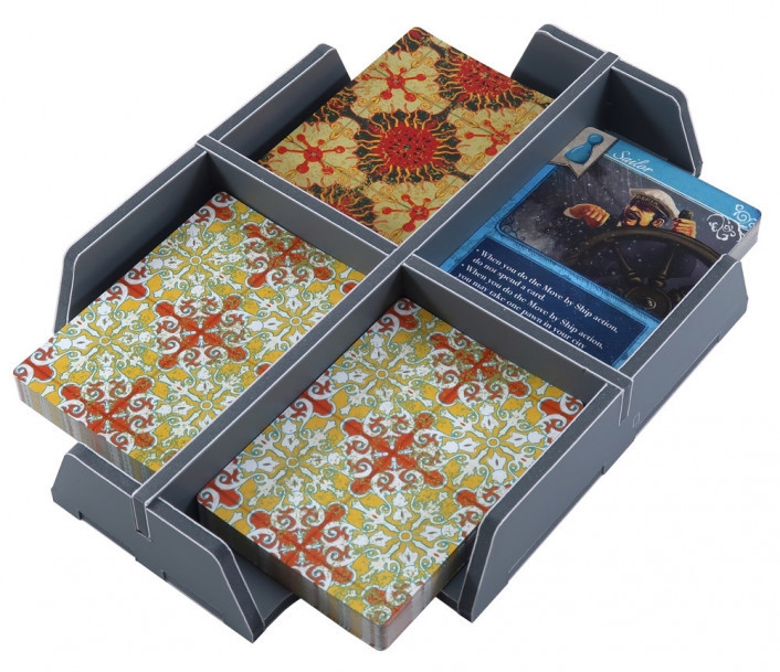Insert compatible with Pandemic: Iberia®, or separately compatible with Pandemic: Rising Tide® or Pandemic: Fall of Rome®. The design provides both efficient storage and improved game play. The trays can be utilised during the game, and they greatly aid set-up and clear-away times. The rules and boards act as a lid on top of the trays.