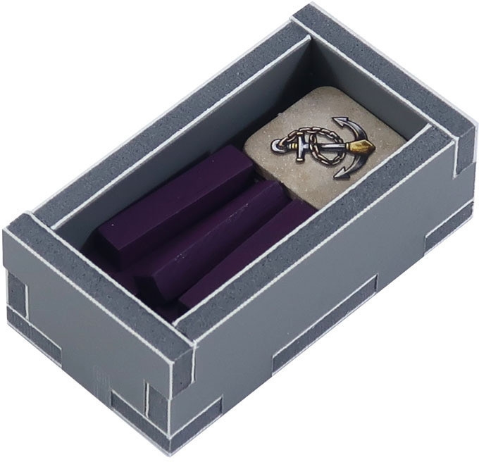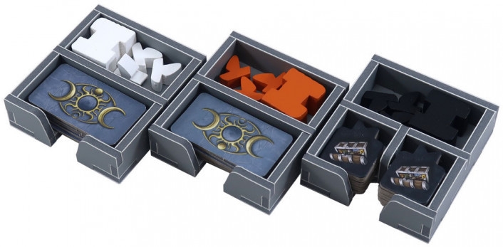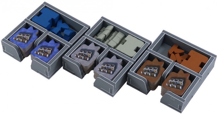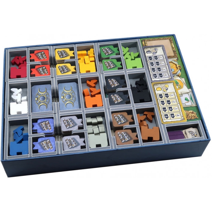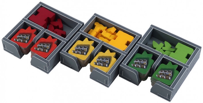 Insert compatible with Terra Mystica: Merchants of the Seas® expansion. The design provides both efficient storage and improved game play. The trays can be utilised during the game, and they greatly aid set-up and clear-away times.
