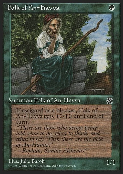 Whenever Folk of An-Havva blocks, it gets +2/+0 until end of turn.