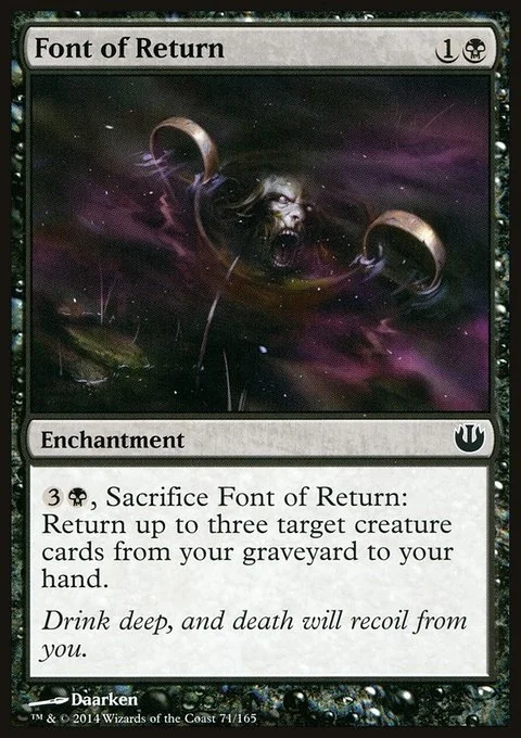 {3}{B}, Sacrifice Font of Return: Return up to three target creature cards from your graveyard to your hand.