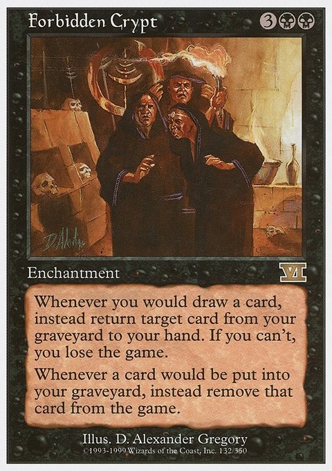 Whenever you would draw a card, instead return target card from your graveyard to your hand. If you can’t, you lose the game.