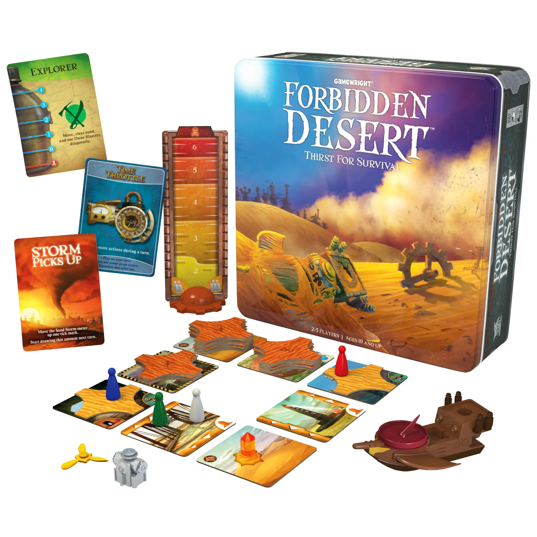 Gear up for a thrilling adventure to recover a legendary flying machine buried deep in the ruins of an ancient desert city. You'll need to coordinate with your teammates and use every available resource if you hope to survive the scorching heat and relentless sandstorm. Find the flying machine and escape before you all become permanent artifacts of the Forbidden Desert!
