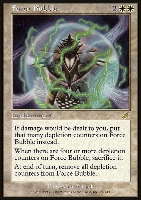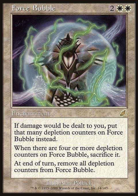 If damage would be dealt to you, put that many depletion counters on Force Bubble instead.