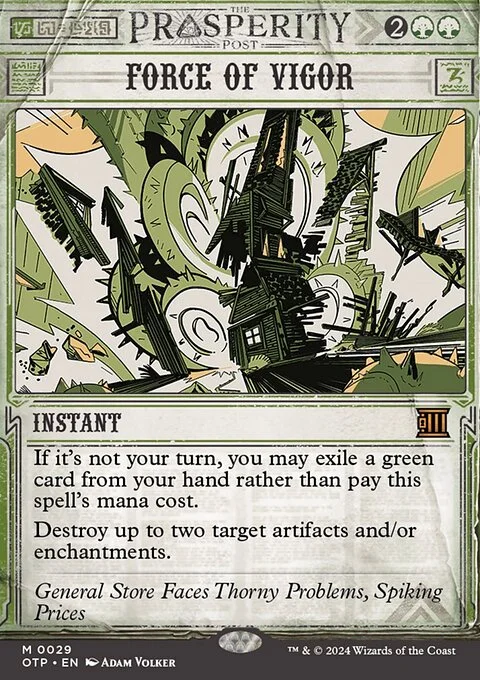 If it's not your turn, you may exile a green card from your hand rather than pay this spell's mana cost. Destroy up to two target artifacts and/or enchantments.