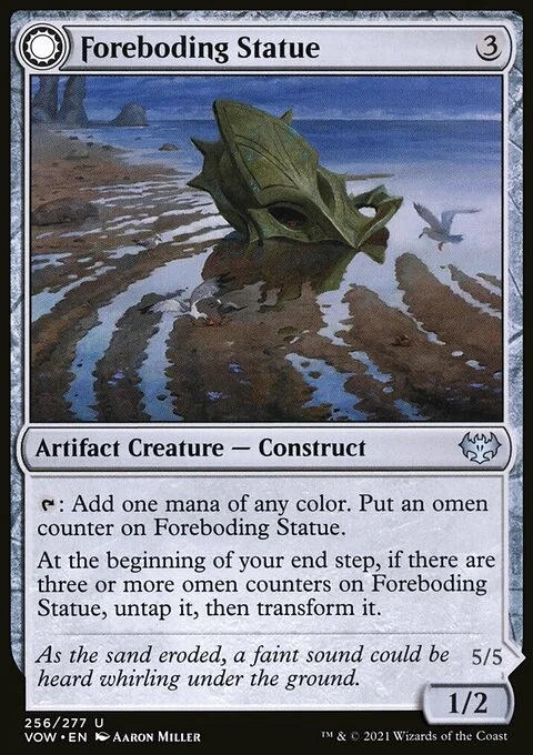 At the beginning of your end step, if there are three or more omen counters on Foreboding Statue, untap it, then transform it.