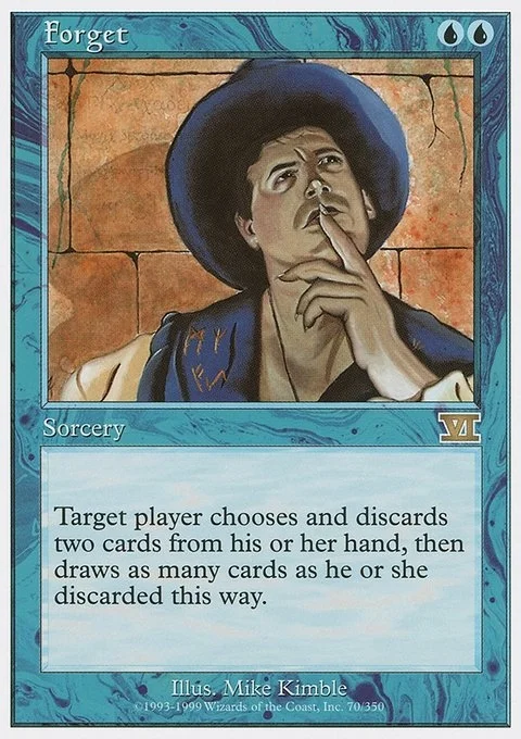 Target player chooses and discards two cards from his or her hand, then draws as many cards as he or she discarded this way.