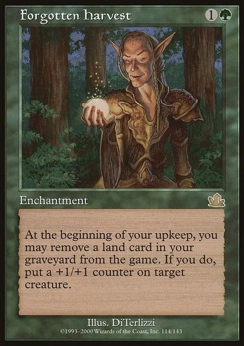At the beginning of your upkeep, you may exile a land card from your graveyard. If you do, put a +1/+1 counter on target creature.
