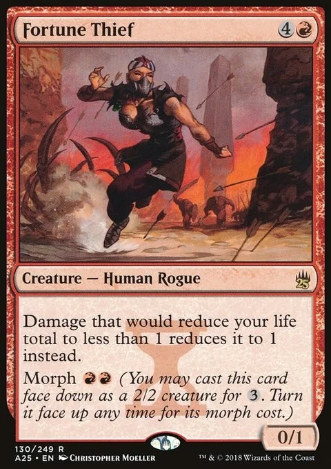 Damage that would reduce your life total to less than 1 reduces it to 1 instead. Morph {R}{R} (You may cast this card face down as a 2/2 creature for {3}. Turn it face up any time for its morph cost.)