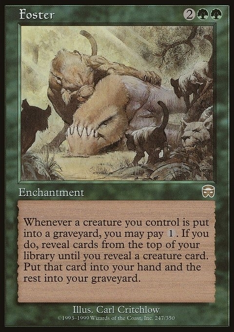 Whenever a creature you control is put into a graveyard, you may pay 1. If you do, reveal cards from the top of your library until you reveal a creature card. Put that card into your hand and the rest into your graveyard.