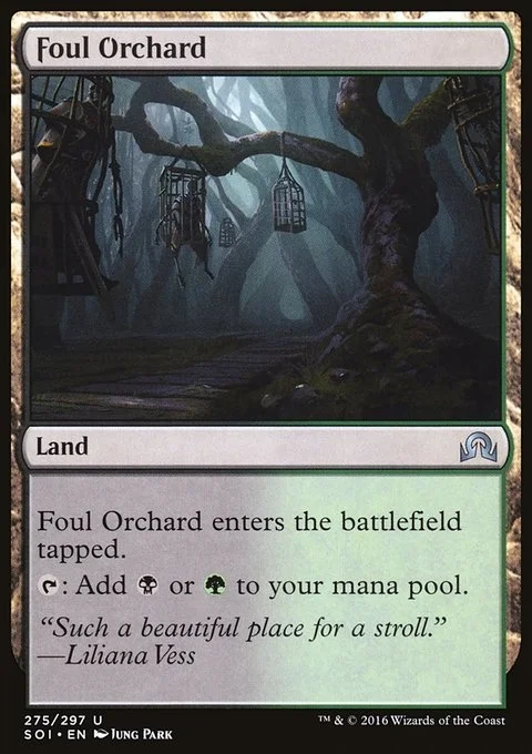 Foul Orchard enters the battlefield tapped. {T}: Add {B} or {G}.