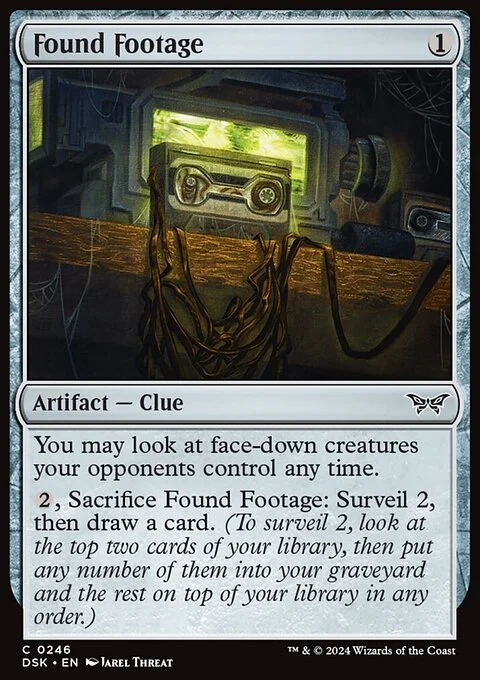 {2}, Sacrifice this artifact: Surveil 2, then draw a card. (To surveil 2, look at the top two cards of your library, then put any number of them into your graveyard and the rest on top of your library in any order.)