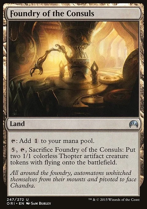 {T}: Add {C}. {5}, {T}, Sacrifice Foundry of the Consuls: Create two 1/1 colorless Thopter artifact creature tokens with flying.