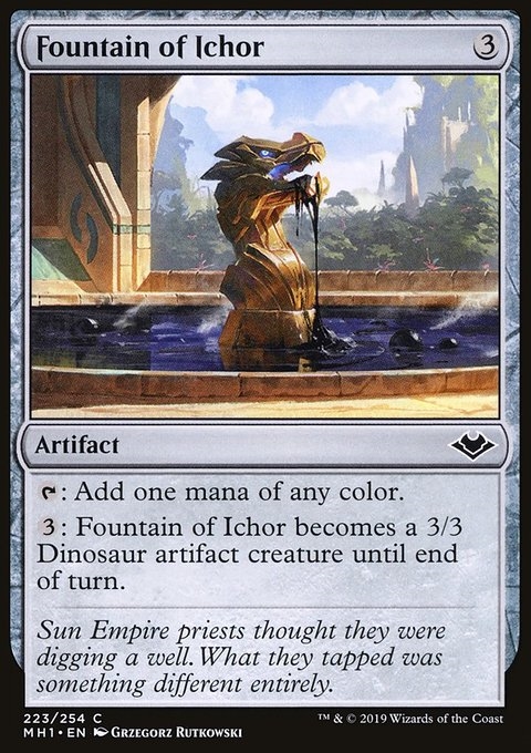{T}: Add one mana of any color. {3}: This artifact becomes a 3/3 Dinosaur artifact creature until end of turn.