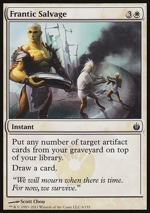 Put any number of target artifact cards from your graveyard on top of your library. Draw a card.