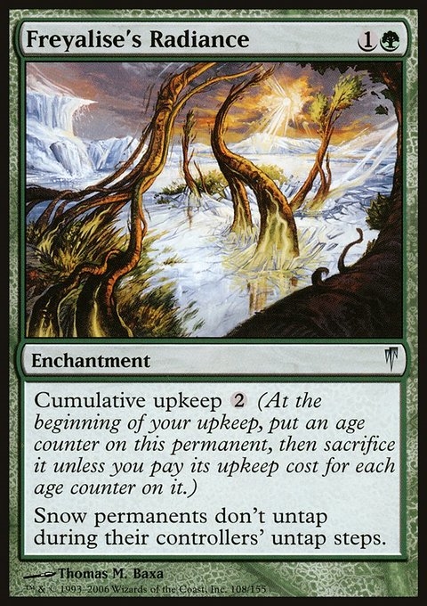 Cumulative upkeep {2} (At the beginning of your upkeep, put an age counter on this permanent, then sacrifice it unless you pay its upkeep cost for each age counter on it.) Snow permanents don't untap during their controllers' untap steps.