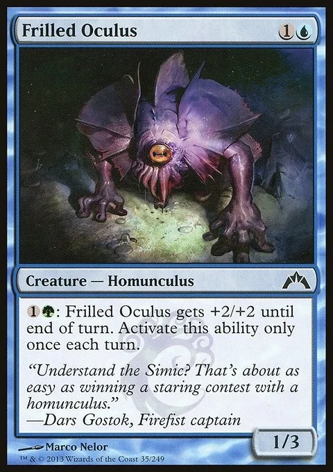 {1}{G}: Frilled Oculus gets +2/+2 until end of turn. Activate this ability only once each turn.