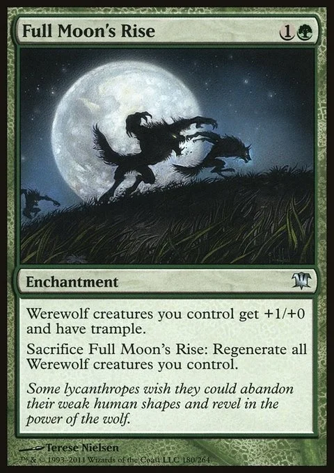 Werewolf creatures you control get +1/+0 and have trample. Sacrifice Full Moon's Rise: Regenerate all Werewolf creatures you control.