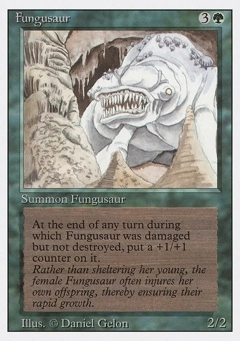 At the end of any turn during which Fungusaur was damaged but not destroyed, put a +1/+1 counter on it.