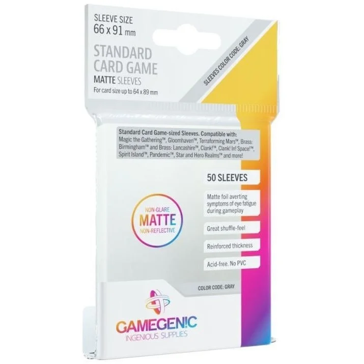 Board-game cards suffer from frequent shuffling and heavy touching, therefore their protection should be of huge interest to any devoted board gamer. These board-game sleeves provide a premium protection and still keep a great shuffle feel. With their matte lamination, these sleeves block annoying reflections to ensure that cards are clearly visible from all angles and avoid symptoms of eye fatigue during gameplay.
