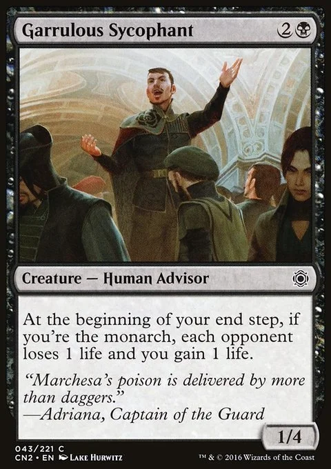 At the beginning of your end step, if you're the monarch, each opponent loses 1 life and you gain 1 life.