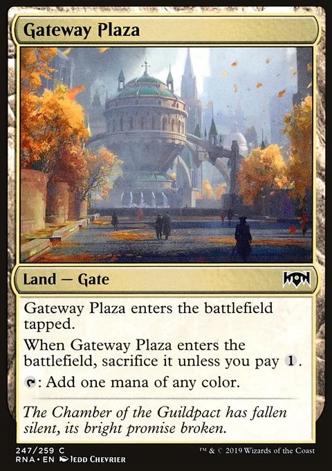 This land enters tapped. When this land enters, sacrifice it unless you pay {1}. {T}: Add one mana of any color.