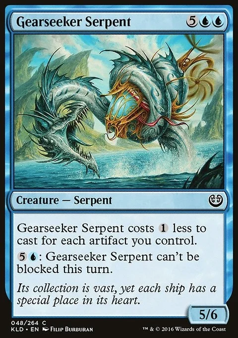 Affinity for artifacts (This spell costs {1} less to cast for each artifact you control.) {5}{U}: This creature can't be blocked this turn.