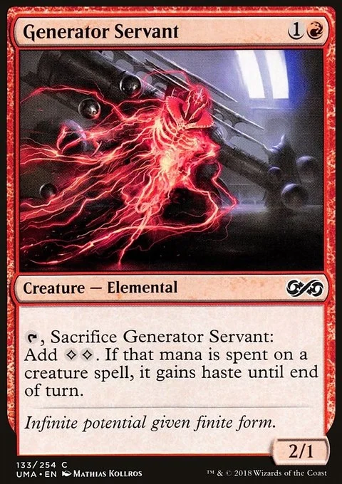 {T}, Sacrifice Generator Servant: Add {C}{C}. If that mana is spent on a creature spell, it gains haste until end of turn. (That creature can attack and {T} as soon as it comes under your control.)