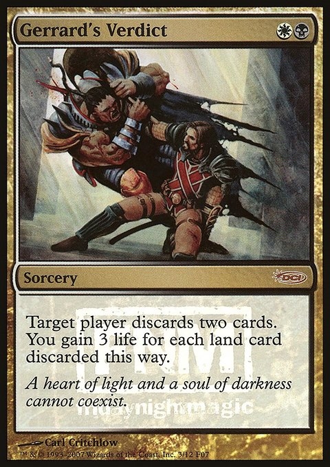 Target player discards two cards. You gain 3 life for each land card discarded this way.