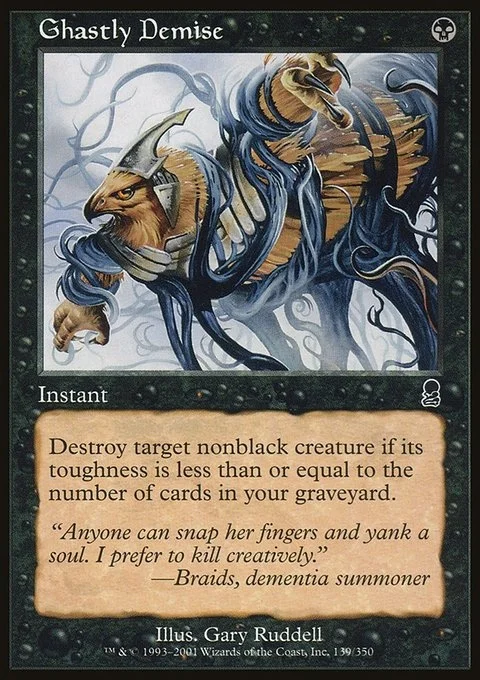 Destroy target nonblack creature if its toughness is less than or equal to the number of cards in your graveyard.