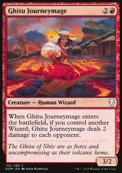 When this creature enters, if you control another Wizard, this creature deals 2 damage to each opponent.