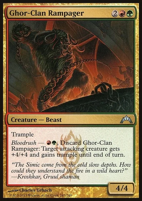 Trample Bloodrush — {R}{G}, Discard Ghor-Clan Rampager: Target attacking creature gets +4/+4 and gains trample until end of turn.